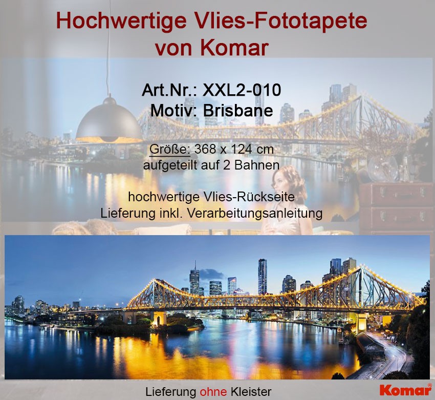 KOMR 010-2 XXL Vliesová fototapeta Komar - Brisbane - most, velikost 368x124 cm